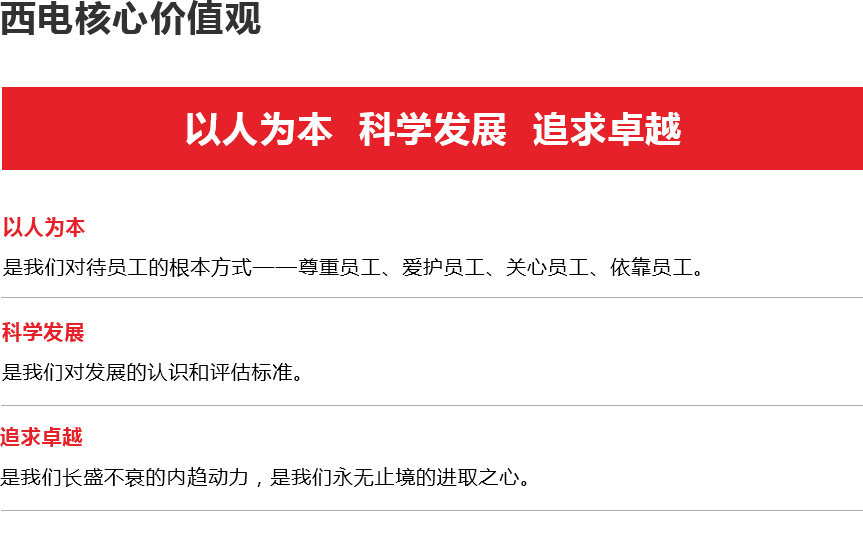 标识采用独具中国特色的大红,表达了西电作为中央直属特大型国有企业敬业报国的民族信念和高度责任感;同时红色代表着活力、生机、永恒,寓意西电的未来无限美好与辉煌;