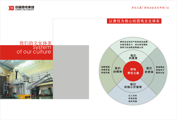 以责任为核心的西电文化体系 西电责任之道—— 1、我们的愿景 拥有自主知识产权和知名品牌,永葆发展活力,成为具有国际竞争力的创新型跨国公司 2、我们的使命 制造精品装备...