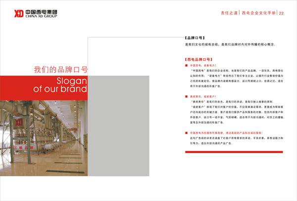 【品牌口号】 是我们文化的凝炼总结,是我们品牌对内对外传播的核心概念。 【西电品牌口号】 ■ 中国西电,装备电力! “中国西电”是我们的企业简称,也是我们的产品品牌,一语双...
