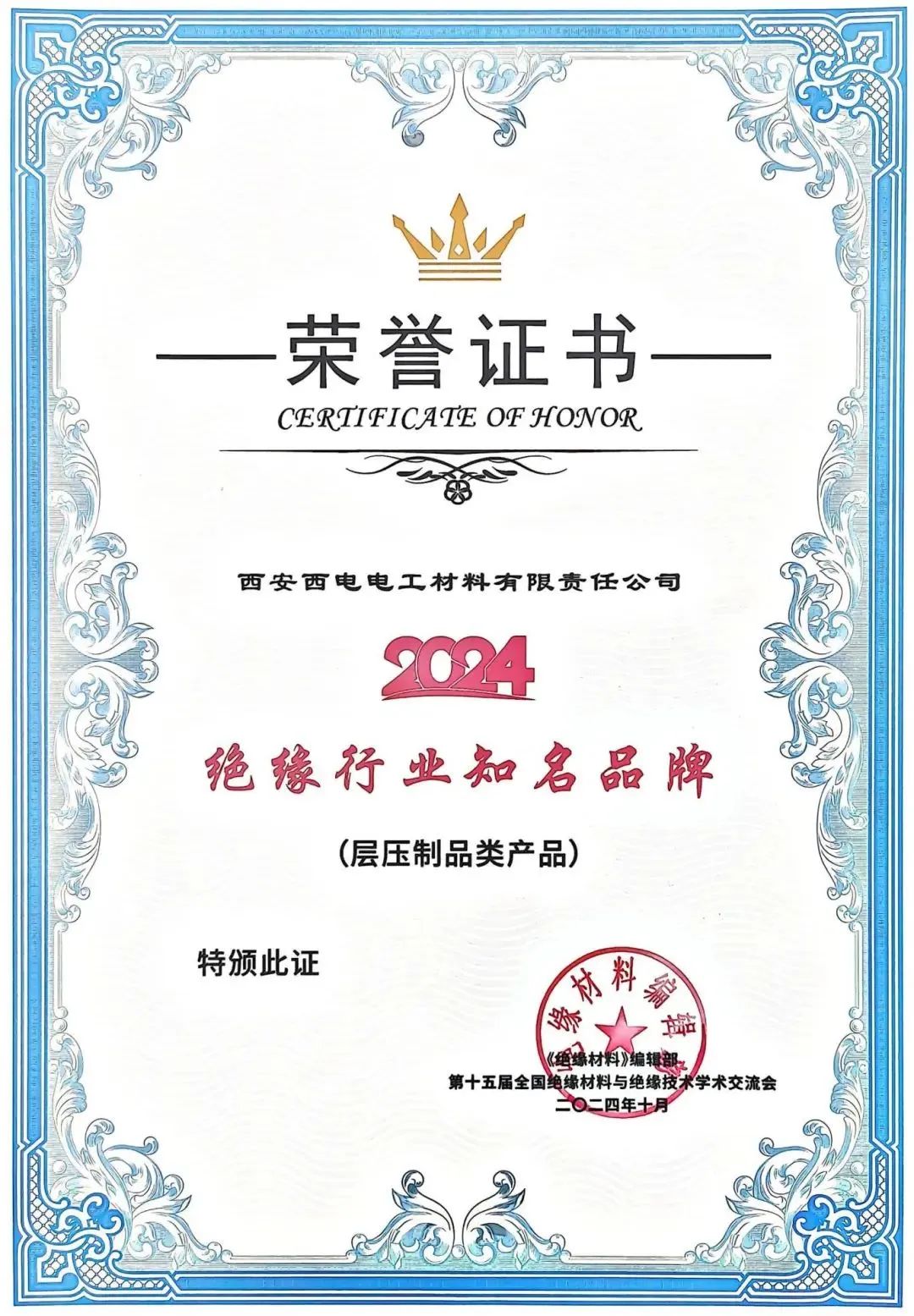 在本次盛会上,西电西材荣获“2024绝缘行业知名品牌”称号,这一殊荣不仅是对企业数十年深耕绝缘材料的认可,更奠定了西电西材在技术创新与市场引领方面的地位。
