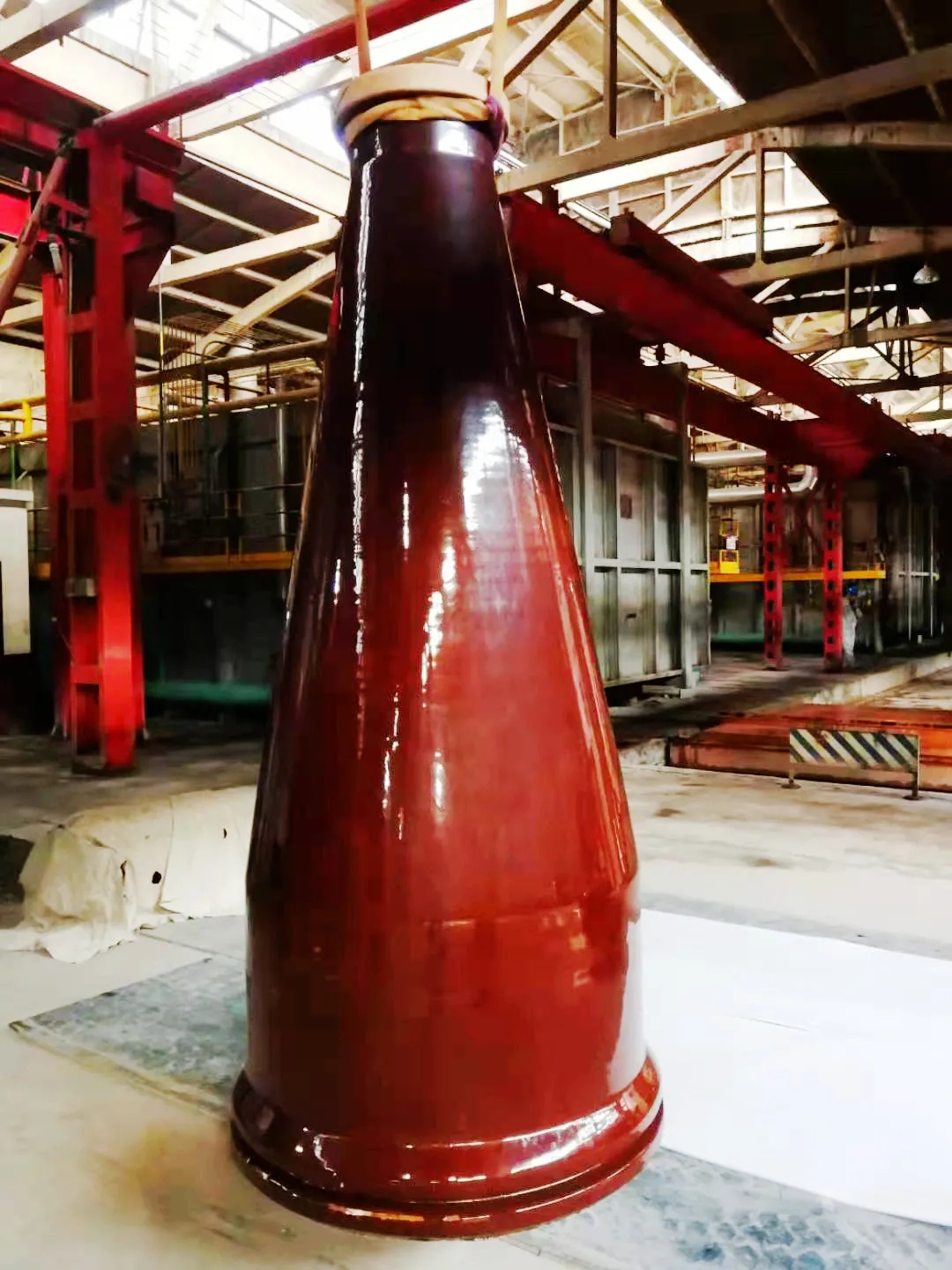 本次研制的2000kV变压器电容套管将应用于目前世界上电压等级最高的试验变压器,对1100kV特高压电气设备产品进行各项严格的电气性能试验。这种试验方法属于国内首次,相比常规产品,试验要求及质量控制更加苛刻。同时,该产品为超大尺寸、薄壁、锥度大、易变形的炮弹式结构,仅毛坯重量就接近8吨,整个制造过程采用湿法产线生产,因突破了很多设备的极限,成型极其困难。在毛坯挤制、转运、阴干、修坯、干燥、上釉、烧成、切割研磨各工序,均存在不同程度困难与挑战。